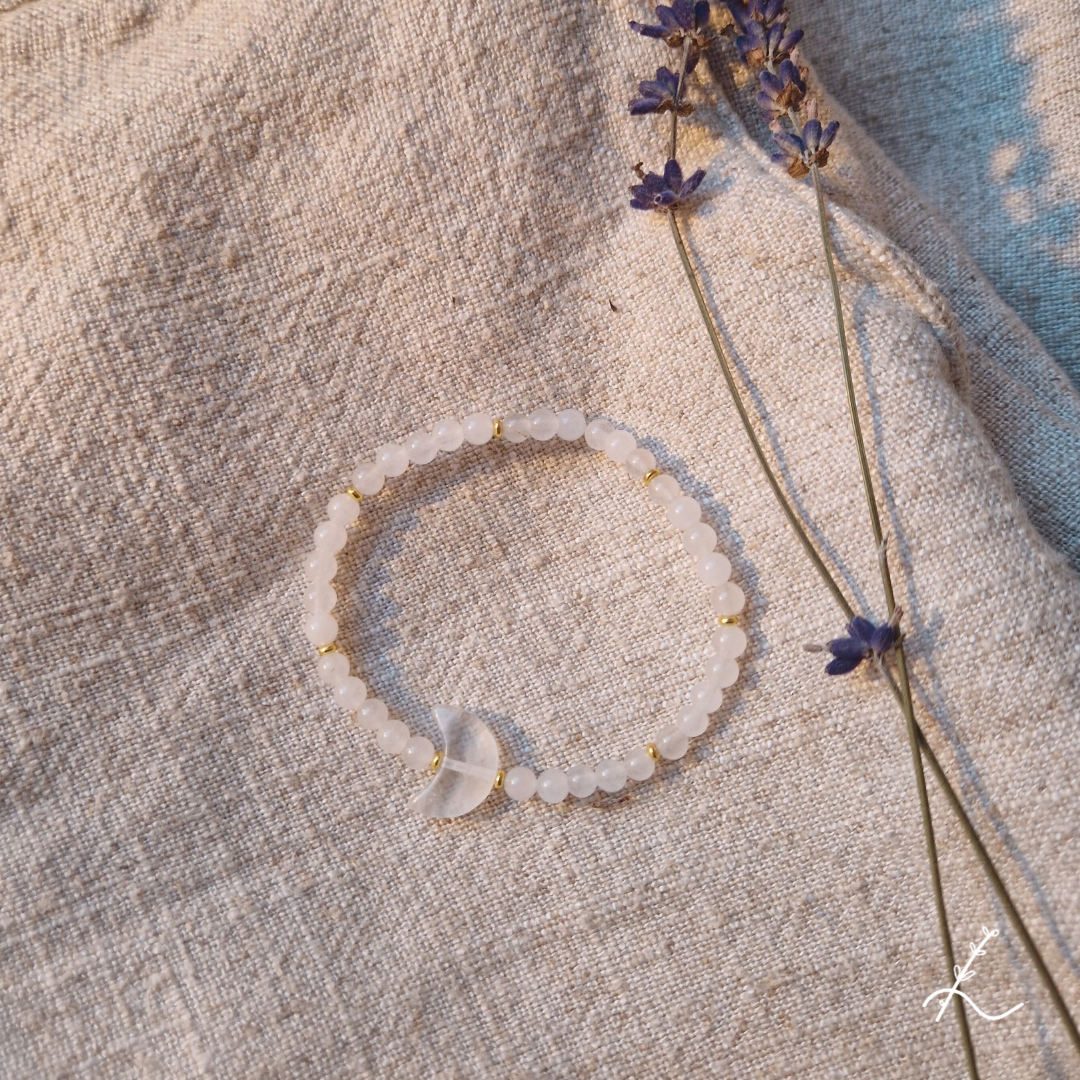 Het middelpunt van deze armband is de maanvormige hanger, een symbool van intuïtie, transformatie en innerlijke wijsheid. De maan vertegenwoordigt de cycli van het leven, groei en spirituele ontwikkeling. In combinatie met bergkristal helpt dit sieraad je energie te zuiveren, focus te verbeteren en een diepe verbinding met jezelf te creëren.
