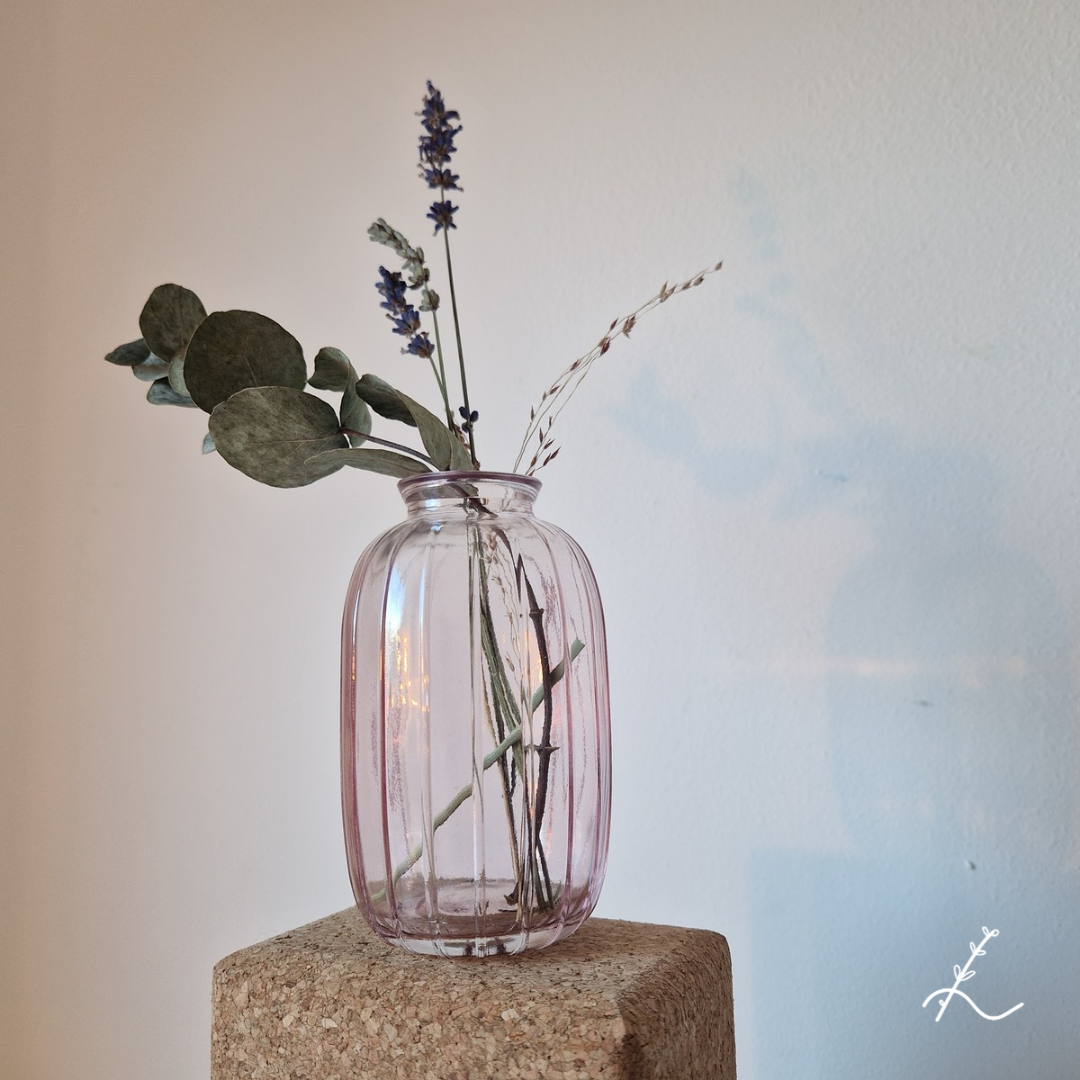 Roze vaas ‘Fayra’ inclusief gedroogde Eucalyptus – Een Tijdloze Toevoeging voor elk Interieur.